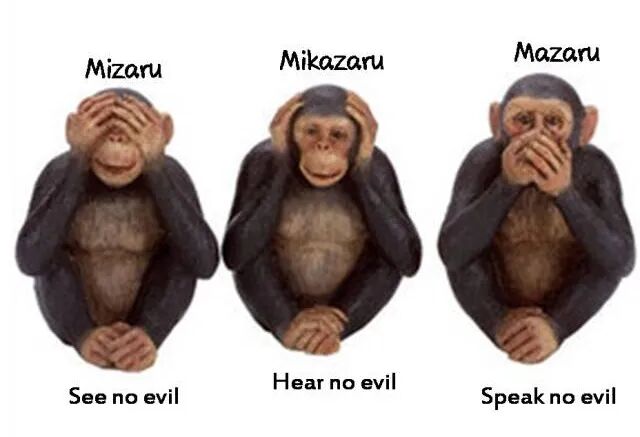 还有一种说法是源自中国,就是孔子所说的:非礼勿听,非礼勿言,非礼勿视。“智猴”的谚语里,其实还有第四只猴子。子曰里也同样还有“非礼勿动”。