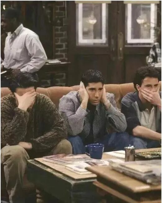 在美剧《老友记》中,Ross决定要送走他的猴子Marcel的那天,三个人在咖啡馆里摆出了同样的姿势:
