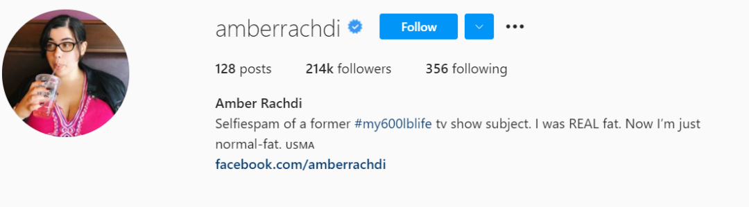 经过持续的锻炼和饮食控制,到节目录制结束时,她神奇地减重267磅约合120公斤!从那时起,对自己更有信心的Amber 也成了健身房的常客。她知道肥胖的痛苦,也更懂得减肥过程的艰辛,她不想让自己回到原来,因此只能不断挑战自己。她在社交媒体上承认,有时真的是逼着自己去锻炼的。
