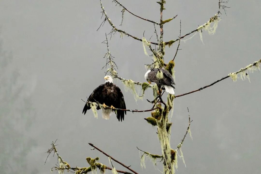 除了观熊外,一跃而起的海豚、慵懒的海狮、以及海中巨无霸鲸鱼,都是很容易能看到的。千万不要以为大熊雨林只有熊,有时可以看看头顶,说不定树上有白头鹰呢。