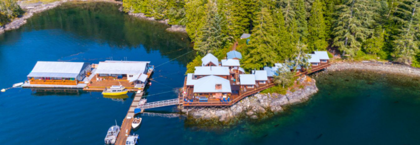 答案是位于南大熊雨林布劳顿群岛海洋省立公园的Farewell Harbour再会港木屋度假旅舍!