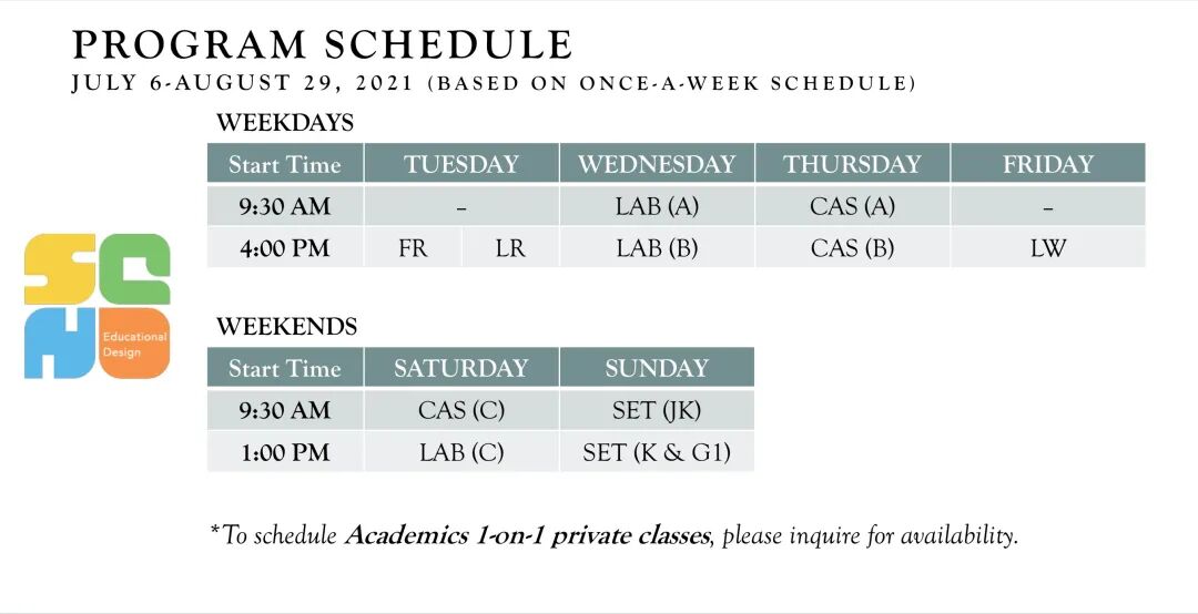 与夏令营不一样的地方时,暑期班SQN提供具有针对性的学习,采用小组课程,每个小组由2位老师带领。