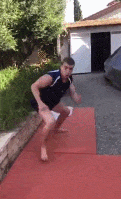 随后为了视频能继续下去,他会做出反击,这个侧空翻踢腿只能说牛 X ,换我来做直接就是一个瘫的痪。
