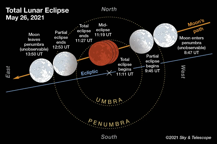 【加拿大乐活网lahoo.ca 亚瑟综述】2021年5月26日晚上,加拿大的夜空将出现“月全食和超级月亮”的天文奇景。这是自2019年1月以来的第一次出现月全食,也是2021年唯一的一次月全食。