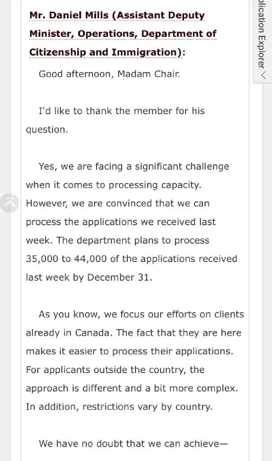 加拿大移民部助理副部长Daniel Mills发言称,将在今年12月31日之前处理完已收到的3.5万到4.4万份移民申请,“我们确定能做到”。