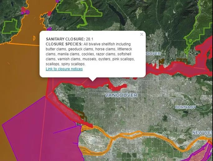 温哥华沿海目前任何贝类都因为污染等原因被禁止挖掘了,但是温哥华岛部分地区目前蛤蜊,生蚝,淡菜还是可以挖的,这些在省政府的网站地图上标注的很明白。