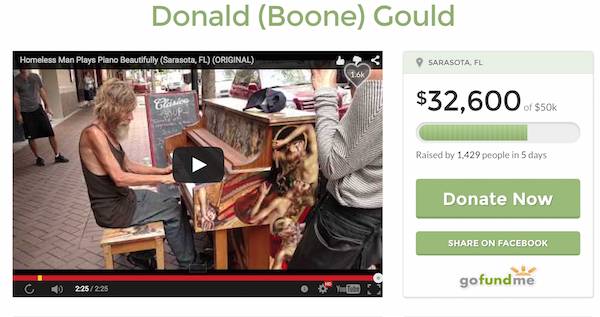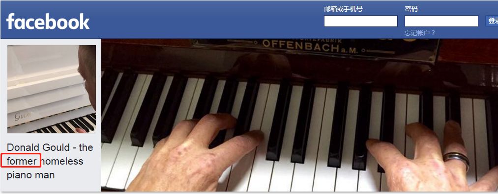 网友们还在Facebook上给他开通了一个社交账号,名为“Donald Gould-the former homeless piano man”.