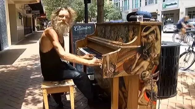 当时,在佛罗里达一家乐器店门口,摆着一架钢琴,来往市民可以随意弹唱。