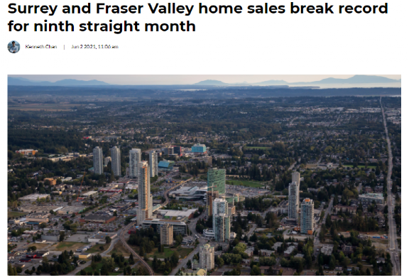 6月2日,菲沙河谷地产局(FVREB)也公布了该辖区内的5月地产数据。数据显示,截至2021年5月结束,该地区的房屋销量已连续9个月打破历史记录,且上新挂牌房源的数量也逼近历史新高。