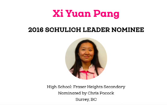 2016年,庞奚媛还获得了“舒立克领导人”提名。