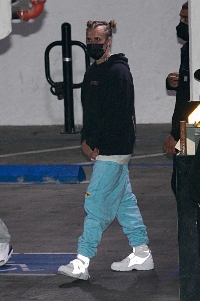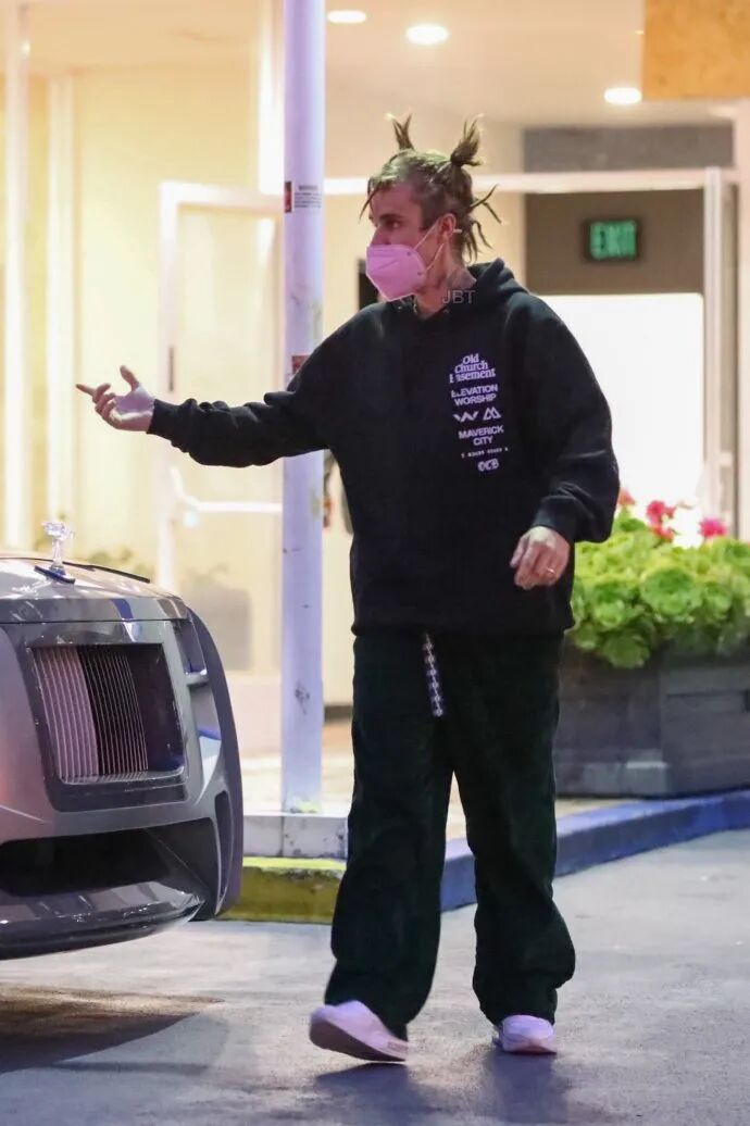 不仅如此,在飞天小辫儿的基础上,比伯还进行了发型升级:双丸子头。