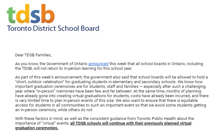 由于新冠疫情,卑诗省各所高中的毕业典礼去年被迫取消,大家担心2021年毕业的学生可能会发生同样的情况。很多学生和家长希望省政府能够对重新启动计划进行调整,以高调的方式,帮助学生结束这艰难的一年。