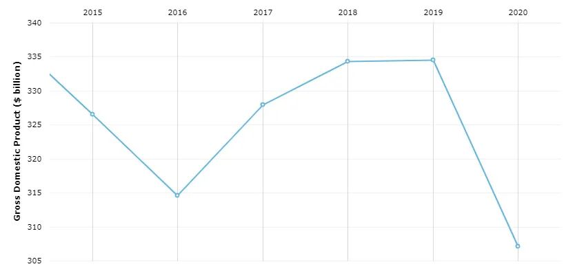 (阿尔伯塔从2015年至2020年的总GDP;source:GoA)