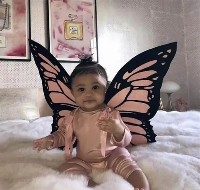 关于Stormi的名字有一个很浪漫的说法:Kylie与Travis都很爱蝴蝶,而蝴蝶效应就是说:“一只南美洲亚马逊河流域热带雨林中的蝴蝶,偶尔扇动几下翅膀,可以在两周以后引起美国得克萨斯州的一场龙卷风(storm)。” 所以两只蝴蝶的女儿就是“Stormi”。