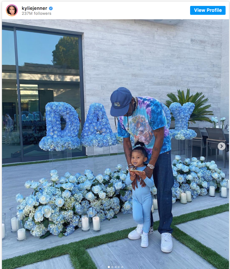 爱女心切的Travis还是不时前往Kylie的别墅,与Stormi培养感情。