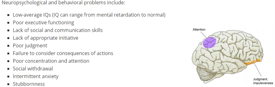 孩子长大以后也会有各种各样健康问题,比如:智力低下,焦虑,动作不协调,判断力差,难以集中注意力,缺乏社交和沟通技巧,不考虑行动后果等等。