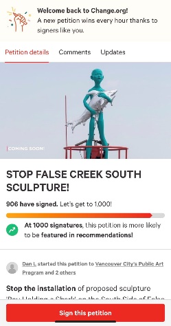 在Chang.org上,有人发起了叫停树立雕塑的公开信。
