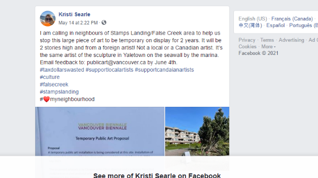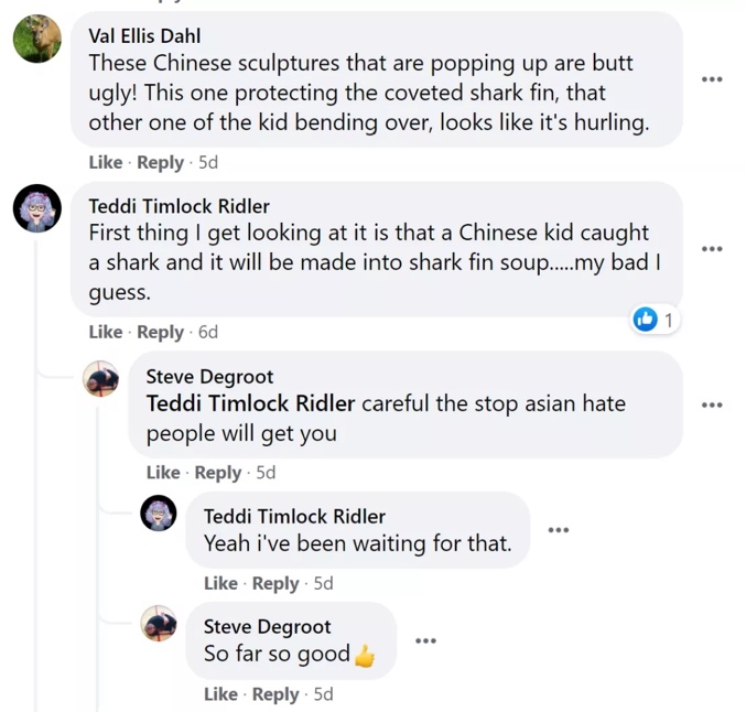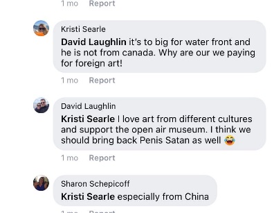 在公开信的评论中,可以看到有人反对雕塑的原因是创作者非加拿大人。