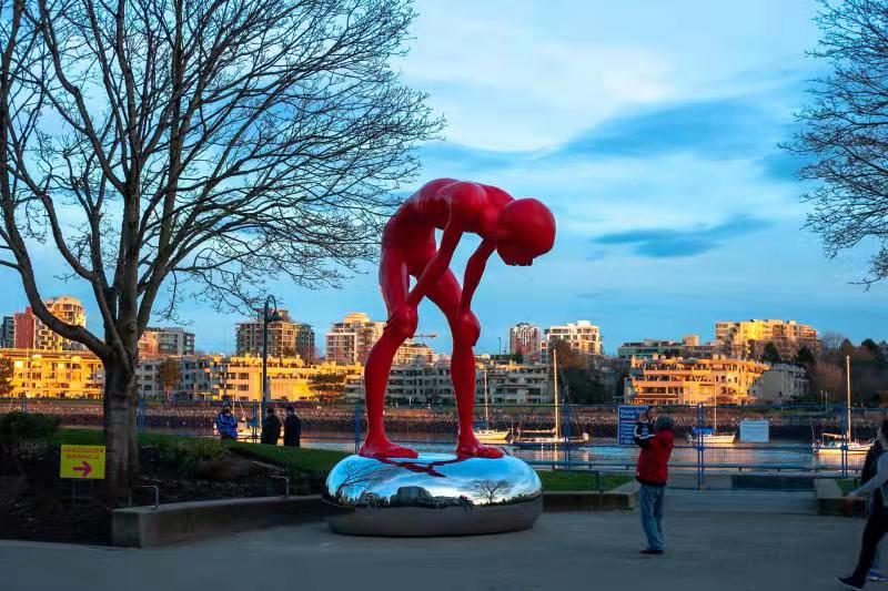 [加拿大乐活网lahoo.ca 讯]在温哥华福溪树立着一座别致的雕像——“小红人”。“小红人”正式的雕塑名称为《笑傲江湖》,灵感源自带给无数人美好童年记忆的武侠小说《笑傲江湖》。小红人带着天真的微笑看着行人,播撒下乐观的种子。这座通体鲜红、俯身大笑的”小红人”雕塑是温哥华双年公共艺术节(Vancouver Biennale)的一部分,由著名华人艺术家陈文令(Chen Wenling)制作。