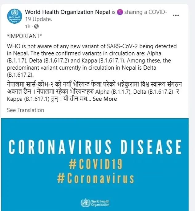 卫生专家说,尼泊尔出现了冠状病毒的一种变种,美国已出现确诊病例。