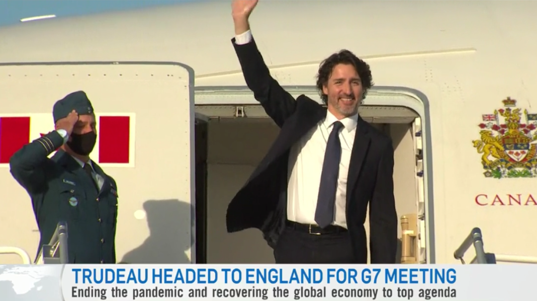 6月10日上午,加拿大总理特鲁多搭乘专机前往英国,参加6月11-13日的七国集团峰会。