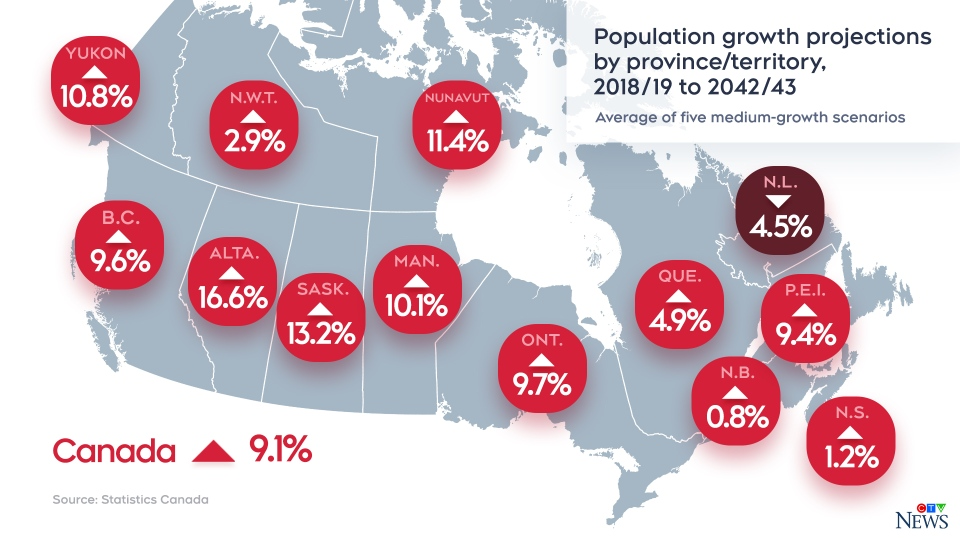 加拿大统计局的数据显示,到2021年初,加拿大人口数量刚刚超过3,800万。到2043年,这一数字将达到4,650万。移民将会是推动人口增长的主要因素。