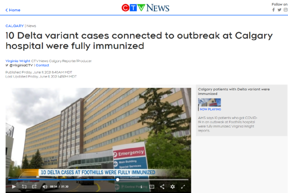 “虽然已有病例显示变种病毒会突破疫苗防护,但绝大多数接种疫苗的人都会受到保护,”Hinshaw博士说。CTV News称,在疫情期间,Foothills医院经历了好几次疫情暴发,但涉及到Delta变种的还是第一次。
