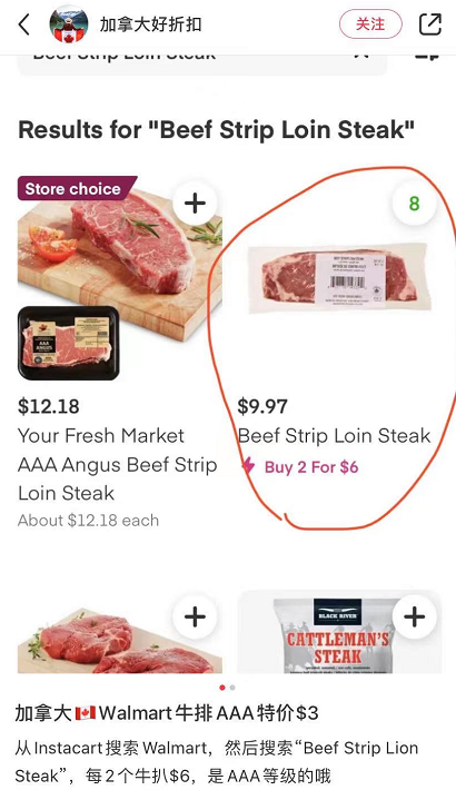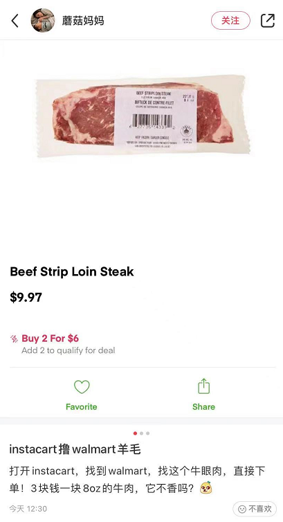 虽然Instacart沃尔玛的打折牛肉卖完了,