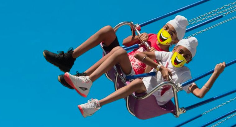 4、在排队和乘坐游乐设施时必须戴上口罩。