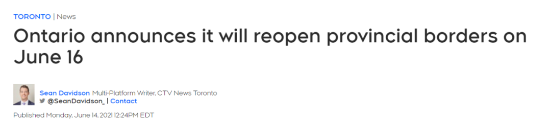 同时最新消息显示,安省将取消与魁北克省和曼尼托巴省的陆路水路省际旅行限制。安省副检察长西尔维亚·琼斯 (Sylvia Jones) 6月14日宣布,安大略省将于 6 月 16 日取消省级边境限制,允许人们从曼尼托巴省和魁北克省自由进入该省。