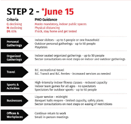 6月14日上午,BC省省长贺谨宣布,全省从6月15日开始,按照重启四步走计划安排,进入第二阶段。