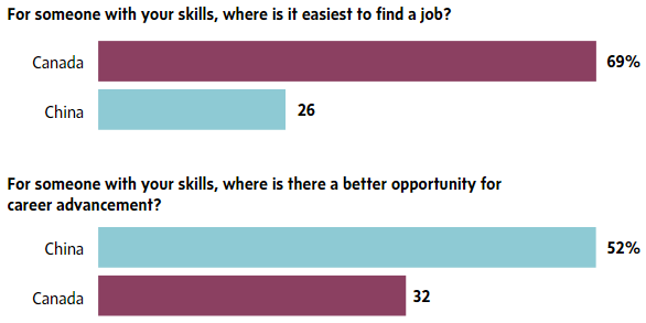 近7成受访学生认为,相比在中国,在加拿大更容易找到工作。但超过半数人表示,在中国有更好的机会,取得职业成就。毕业生Simon Liang表示,