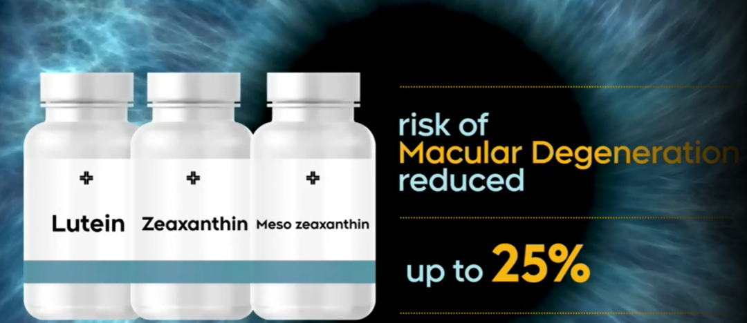 目前,全球眼部保健品公认的主要成分是类胡萝卜素(carotenoids)包括叶黄素(lutein)、玉米黄质(zeaxanthin)、内消旋玉米黄质(meso-zeaxanthin)这些抗氧化剂。类胡萝卜素可以转化为维生素A,对维护人体免疫系统和保护眼睛中的健康细胞至关重要。特别是在北美,家庭医生通常会给黄斑变性(AMD)患者推荐服用适量的这类产品,因为黄斑变性(AMD)是失明的主要原因之一研究表明,每天在饮食中加入至少6毫克的叶黄素可以使患黄斑变性的风险降低43%,有效阻止病情发展。