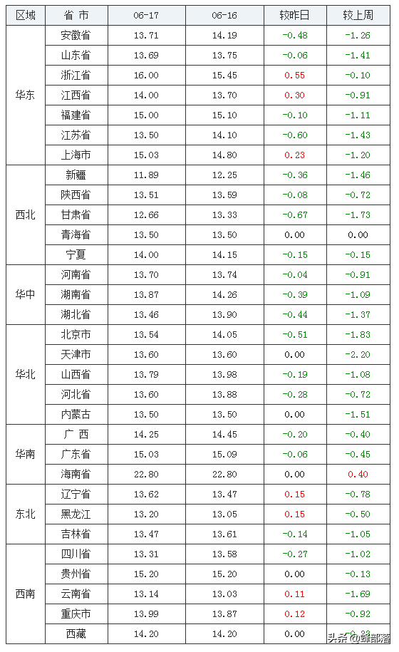 从局部看,外三元生猪东北3省价格全线上扬,华北5省区有3省价格上扬,西北只有甘肃涨价,其它市场绝大部分就是下行。从内三元生猪上看,华东7省市有3个省市价格上扬,东北3省有2个价格上涨,西南5省有2个价格上涨,只有1省价格下跌,其余地区价格均下调。从土杂猪价格上看,东北3省有2个省价格上调,西南5省市区有2个价格下行,华东7省市只有1个地区价格上扬,华南地区也只有1个地区价格上扬。