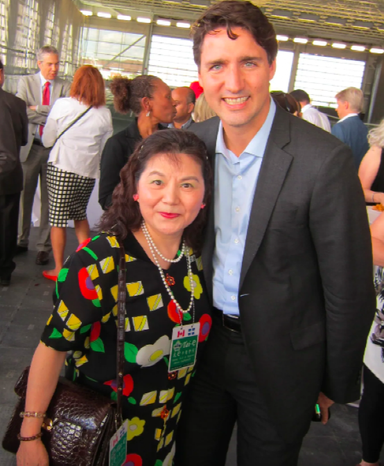 Shu-e Wu(左)和特鲁多合影 (图自CBC)