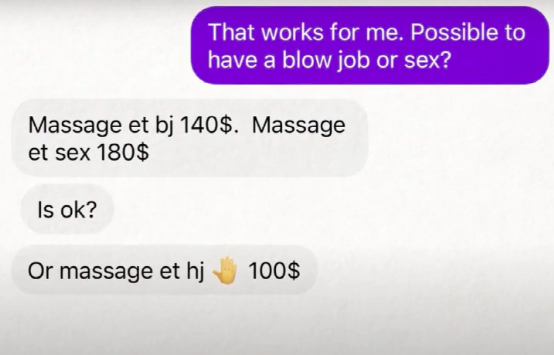CBC的记者在调查中发现,这些按摩师喜欢在分类广告网站Kijiji上宣传他们的“业务”。于是记者给40多家按摩中心发送了短信,结果有18家回复说,愿意提供一系列X交易——从“全方位服务”到“开心大结局”,应有尽有,要啥有啥。