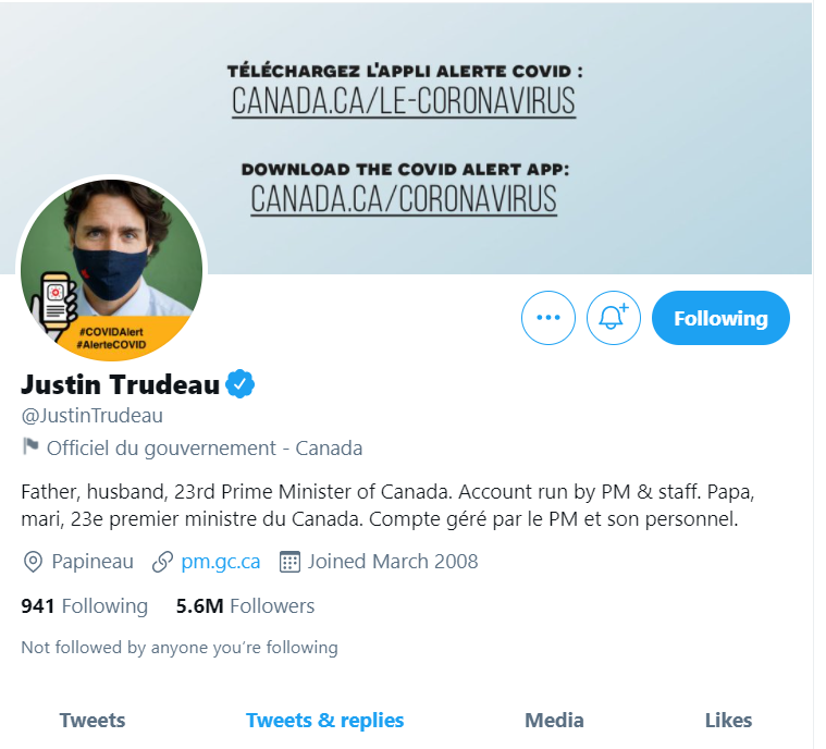在他的推特上,他给自己三个头衔,第一个就是父亲,然后是丈夫,最后才是加拿大总理。