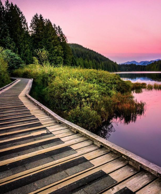 这个美丽的湖泊被郁郁葱葱、宁静的森林所环绕,巨大的卵石沿着海岸线排列。地点:距离温哥华市中心约90分钟车程,Squamish以北约15公里15. Lost Lake 从惠斯勒可以步行至迷失湖,途径步道和蜿蜒小路,非常适合爱狗人士和自行车骑行者,这里也是游客观赏日出日落的好去处。16. Garibaldi Lake