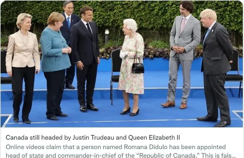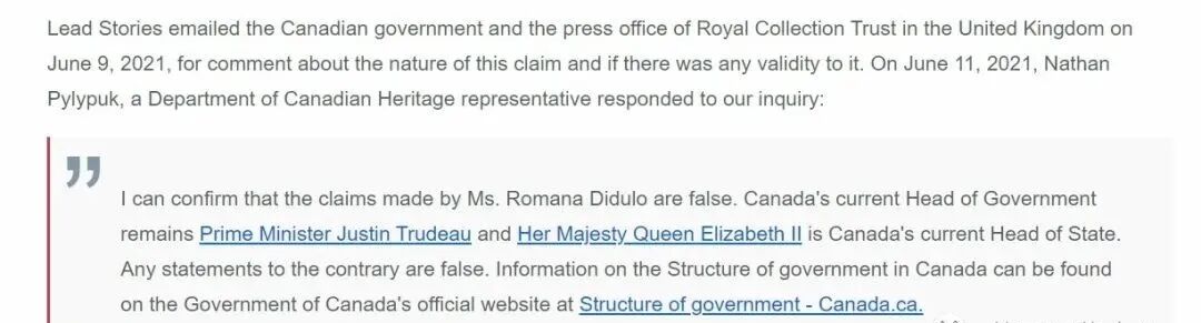竟然逼得FactCheck网站和加拿大文化遗产部向大众确认,那个什么迪杜洛根本不存在,加拿大的现任政府首脑仍然是特鲁多,国家元首也还是伊丽莎白二世。