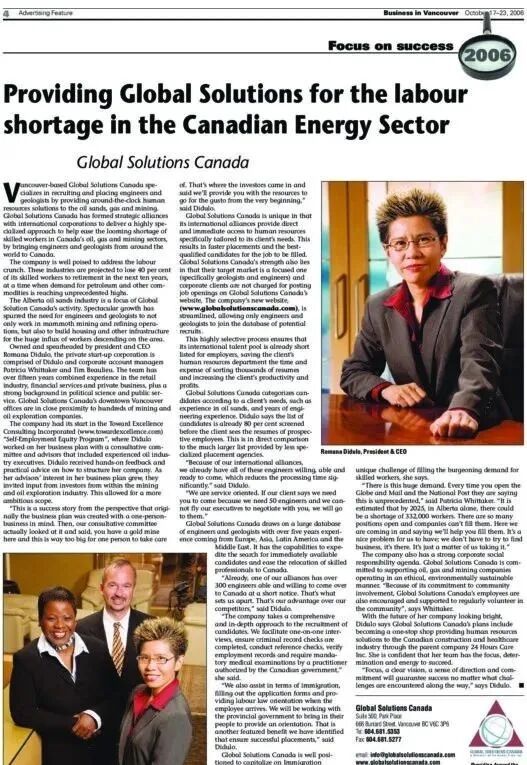 为了回馈这片她深爱着的国土,她一直努力为社会做贡献。毕业后的她晋升为一名成功的商业领袖,执掌数家公司,还曾因为解决加拿大能源部门劳动力短缺提供全球化方案而上过报纸。