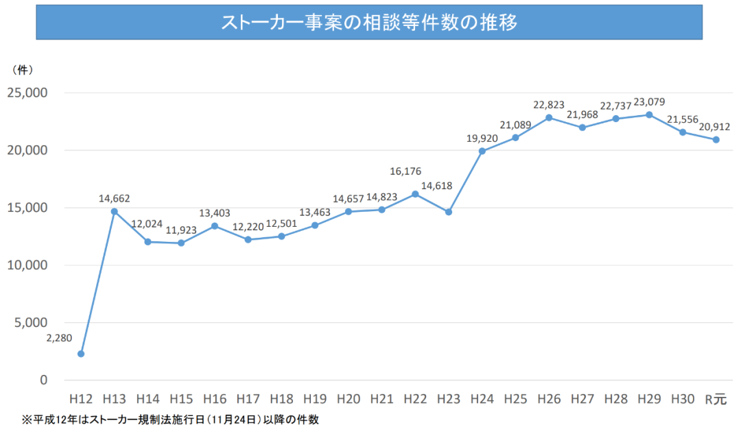 从日本警方公布的数据来看,近几年光记录在案的、与跟踪狂相关的报案和咨询数已经超过20000件。