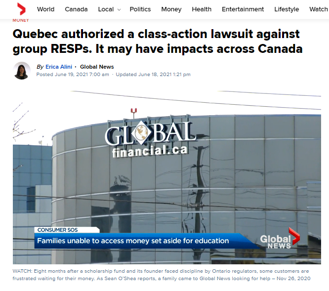 据Global News报道,魁北克授权对RESP集团提起集体诉讼,这个官司可能会影响整个加拿大。