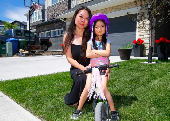 欧女士和女儿在家门口 图源:Galgary Herald