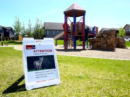 政府在该社区立告示牌阻止人们饲喂郊狼 图源:Galgary Herald
