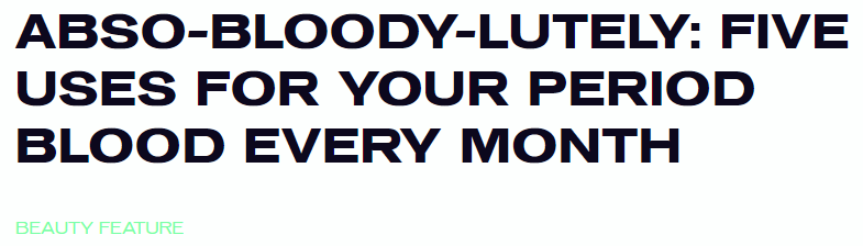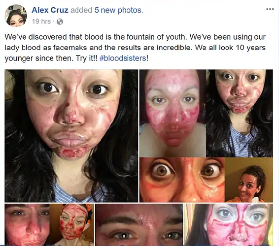 奇葩 ¦ 将姨妈敷在脸上,是欧美女性风靡的杀手级美容!2021-06-24 |作者: | 来源:她乡LaChic她乡分享:#经血#美容 拉斯维加斯31 岁的 Brittani LaBouff是姨妈美容的践行者和传教士,她通过视频展示这一伟大的护肤秘籍。 她向观众发誓,自己的亲姨妈能够创造如丝绸般光滑的肌肤。 几个月前,拥有上万追随者的INS网红 Mari Valents也对这一土法面膜大力推崇。 19岁的Mari很早就开始使用化妆品,一系列化合物对她稚嫩的皮肤过早地产生了腐蚀,自从每个月进行一次面部补血,整个人精神多了。 “我相信这是保持皮肤永远年轻的秘诀之一。” 这种骇人听闻的护肤方式并不是孤立行为,它已持续了数年,通过社交媒体的病毒传播不断扩大圈层,逐渐成为了护肤领域的一股先锋潮流。 从东海岸到西海岸,从网红到线下,姨妈护肤吸引了一票爱美的女孩以身试法。 你可以从油管相关体验视频了解一二。没有抗拒,没有恶心,博主悉心指导,评论区跃跃欲试。 虽说各种作死挑战已成为欧美社交媒体的一种普遍流行趋势,见怪不怪,但这次不同。 网友虔诚而质朴的好奇心还是令传统的东亚互联网用户包括我胆寒。 仿佛那位亲戚隔着屏幕都能一巴掌糊我脸上,而你根本来不及防御。 关于这项先锋护肤的源头,众说纷纭。 值得在它的大事年表记上一笔的是,2018年名叫Alex Cruz的女性在FB上宣称自己用姨妈做出了伟大而成功的尝试。 一石惊起千层浪,无名之辈的这条帖子在一天之内得到近2万次转发。 难以统计多少姐妹已经掏出了家伙,只是很久这场骗局才被揭发,始作俑者不过使用了一款The Ordinary旗下的护肤品,天然胡椒莓成分让它看似血红。 “这跟吸血鬼美容不同,我们的产品只需日常涂抹。” 厂家宣传图 品牌商所说的吸血鬼美容(Vampire Facial),指的前些年推出的一个饱受争议的医美项目: 专业医生从你身上抽取血液,使用专业技术分离出所谓的富含血小板的血浆成分(PRP),然后将其注入面部。 据称这种生猛医美可以刺激胶原蛋白的生成,从而去除细纹和痤疮疤痕。 纽约西奈山医院临床皮肤病学和美容研究主任 Joshua Zeichner是它的实操者和宣传家,金·卡戴珊是它的种子客户。 早在2013年,这位名媛就在使自己更美的路上鞠躬尽瘁。她在第一时间把这项疗法po到Ins,言辞中透着兴奋与自豪。 没过多久她再次更贴,后悔写满了她的双眼。她表示当时她刚怀孕,不能使用麻醉和止痛药,这造成了极不舒服的体验。 “我喜爱任何使皮肤变好的治疗方式,如果它能人性化操作那会更好。” 血色面膜,再生干细胞,纯天然成分,一切的一切绕个弯路不过为姨妈敷脸铺平了道路。 2014年,加拿大艺术家Gabrielle Schlegel迈出了真正的一步,与其给资本家玩吸血鬼医美,不如自给自足,尝试最根源的护肤。 Gabrielle Schlegel致力于瑜伽和冥想的探究,最初把姨妈涂在脸上,起源于克服自己对它的厌恶和恐惧。 “当我十几岁更换棉条,液体不小心沾到手上,那种恶心的感觉与生俱来,就像很多女孩在公众场合拿起卫生巾总会遮掩,对它的羞耻感毫无依据。” “当我成功习惯它在脸上的感觉,我第一次体会到了自由感和赋权感,我变得更爱自己。” Gabrielle Schlegel坦言姨妈给她带来了意想不到的效果,从心理到生理层面。 她向外界表示,痘痘显著消退,容光焕发,是她坚持每月为期五天用姨妈进行纯天然SPA的后果。 但实际上是如何,外人并不清楚,也许是某种宣传策略,也许是某种社操手段,也许对她也确实有用。 受其感召,36岁美国健身女教练Mary Miranda也采用这种方式爱护自己。 与Gabrielle不同的是,Mary一直苦于自己不规则的生理周期。有时持续八天,有时干涸一两个月,最终被诊断出卵巢囊肿子宫肌瘤。 她这才意识到姨妈散发的信号对自己的健康状况有多重要。 她开始期盼她的到来,用月经杯采集,使用它作为灵修,敷脸30分钟,闭眼感受自我的温暖与关怀。 本应被遗弃的姨妈最终散发母性光辉,Mary Miranda认为自己在这种自我循环的母爱下 重回青春。 由于以讹传讹或三人成虎等传统社会效应,关于姨妈是否真的可以护肤,引起了更广泛的注意。著名潮流文化杂志Dazed杂志曾推出过一篇报道《关于姨妈的五种用途》。 文章将姨妈形容为一种高度动态和强大的物质,它是生命生长和休憩的轮回过程,如同一年四季,姨妈承载着整个生命循环的能量。 这让姨妈显得非常有内涵。 除了玄学的角度,有人试图从科学的方面来为姨妈美容提供论据。 她们认为,姨妈富含干细胞。其造血干细胞比脐带中的干细胞增殖得更快,并且可以被转化为包括脂肪、肌肉、骨骼和神经中的各种细胞。 并且富含的锌铜镁钙钠等丰富的营养素和矿物质。 这样的天材地宝,不敷在脸上简直是对美容的犯罪。 神乎其神,时尚杂志COSMOPOLITAN专栏作者,美容勇士杰西卡·亚伯勒绝知此事要躬行。 带粪的泥巴敷面都未曾难倒过的女英雄,这一次用双指搅拌自己的姨妈,温热而粘稠的触感还是让她干呕了好几下。 “出乎意料,那股异味在脸上消散很快,并且快速风干,肌肤有着别样的紧致感。” 她拍下了自己的使用过程。坚持到第三天,痘痘消退了,皮肤有光泽,甚至反射出了神奇的光芒。 “我马上打电话给同事,我不敢相信,这是巫师的法术吗?” 第一天:使用前 第三天:使用后 杰西卡保证自己这三天不使用任何护肤品。转念一想,或许正是因为自己皮肤敏感,在停止使