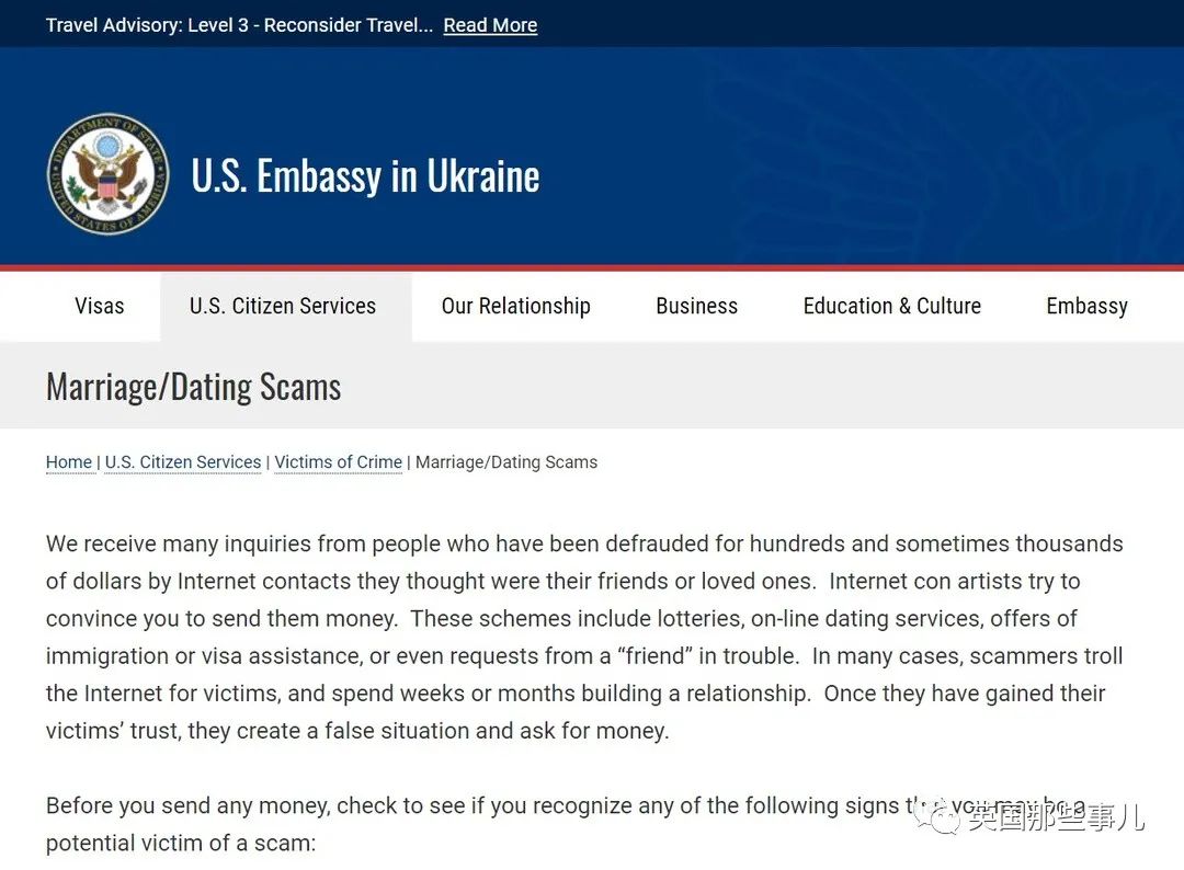 几年前,美国政府就警告游客,去乌克兰时不要盲目恋爱,小心诈骗。因为无法跨国执法,这些钱一旦被骗后,是基本拿不回来的。