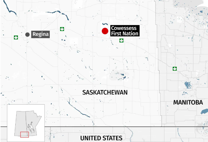 周四下午最新公布Marieval Indian 寄宿学校所在地,同时也是Cowessess原住民现在所处的位置:
