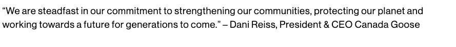 “我们的目标一直以来都是生产高质量的产品,并且对于消费者的需求有求必应。所以这样的决定也是我们决定听取建议这样做。” 加拿大鹅的首席执行官丹尼·雷斯在其环保官方平台HUMANATURE上发布道,“我们会坚定不移的为我们的社区、地球的保护任务和我们的未来下一代做出努力。”