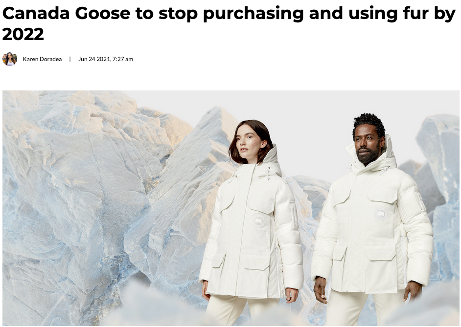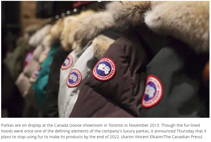 加拿大奢侈羽绒服生产商加拿大鹅(Canada Goose)刚刚宣布,从2022年末起,将不会再生产使用动物毛制作的产品。
