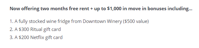 为了让这些房客“忍受”小一点的空间,房东们提供现金奖励、租金折扣,甚至礼品卡来吸引租房者。